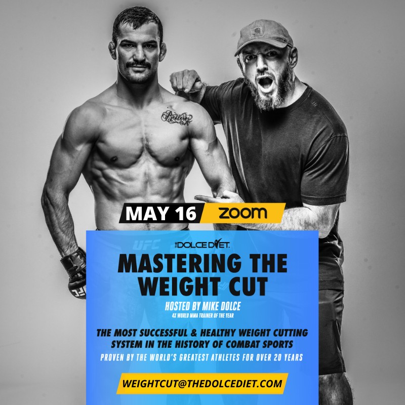 4-Time World MMA Trainer Of The Year, Mike Dolce, is proud to announce his upcoming “MASTERING THE WEIGHT CUT” seminar to be broadcast live and remote around the world via Zoom.